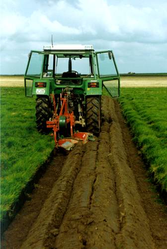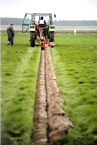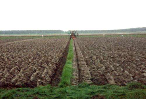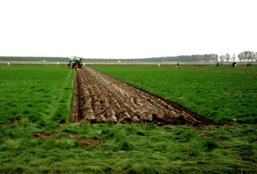 fertige Zusammenschlag im Gras. Die Beetlänge ist 100 m und die zu pflügende