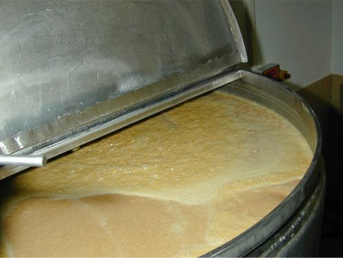 da sie sauer schmeckt. Unten im Hintergrund die Sauermaischpumpe, welche die