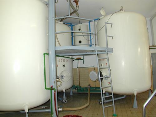 sind die Gärbottiche. In ihnen verweilt die "Süßmaische" 3 Tage. Die zugesetzte